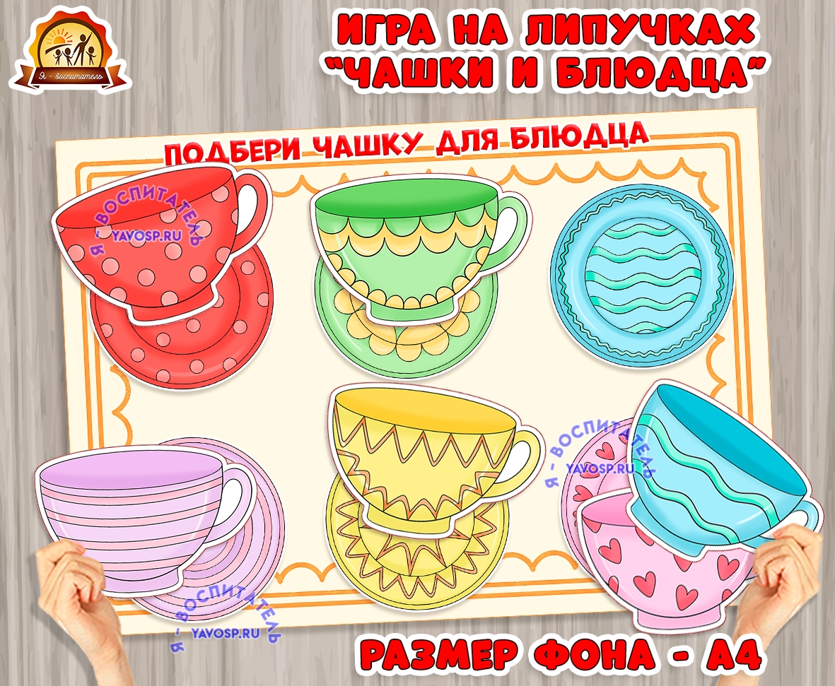 Игра на липучках "Чашки и блюдца" (игры на липучках, игра, Дидактическая игра, пальчиковая игра)