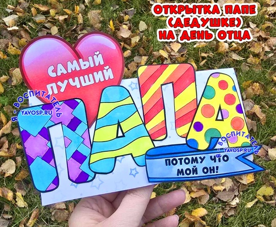 На обратной стороне стих (для папы или дедушки) и соответствующая иллюстрация (папа с сыном или дочерью, дедушка с внуком или внучкой).