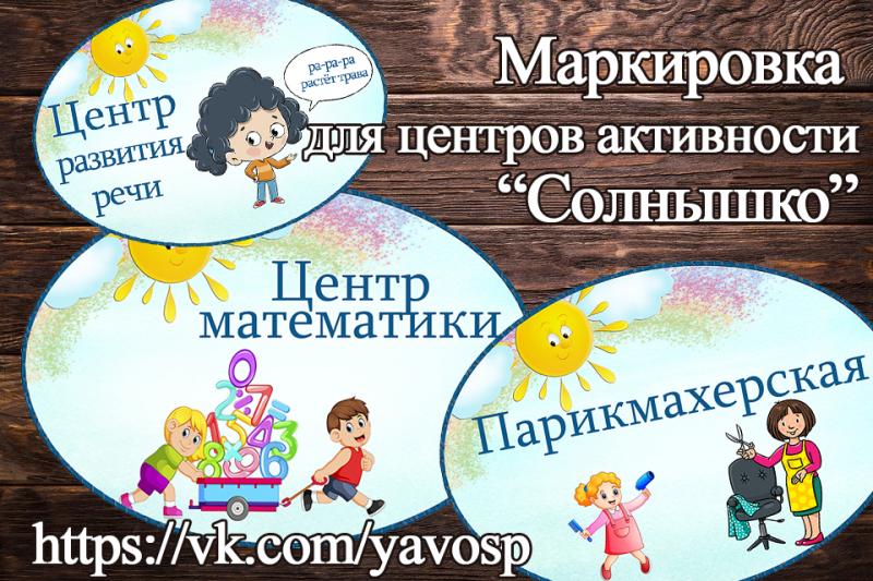 Маркировка для центров активности групп "Солнышко", "Лучики" и других