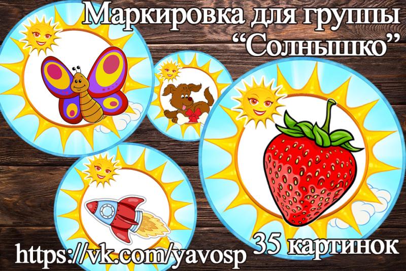 Маркировка для группы "Солнышко", "Солнышки", "Лучики" картинки для шкафчиков