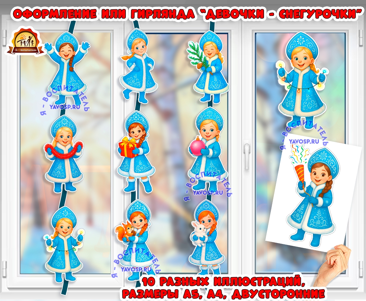 Гирлянда или оформление стены или доски "Девочки - Снегурочки".