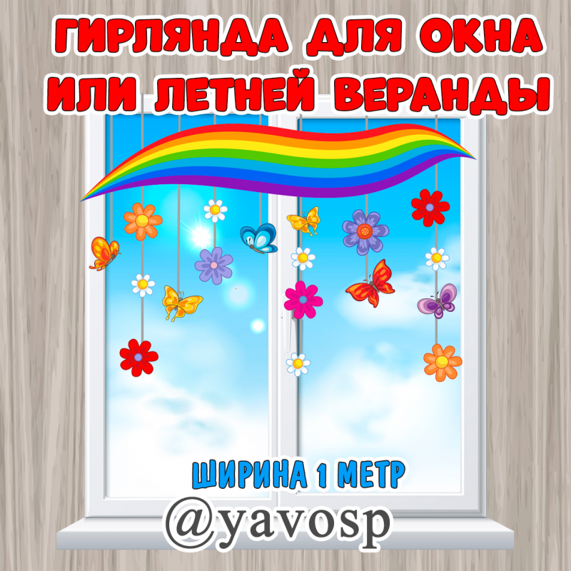 Гирлянда для окна или веранды Радуга (ширина около 1 метра) Радуга, цветы и бабочка
