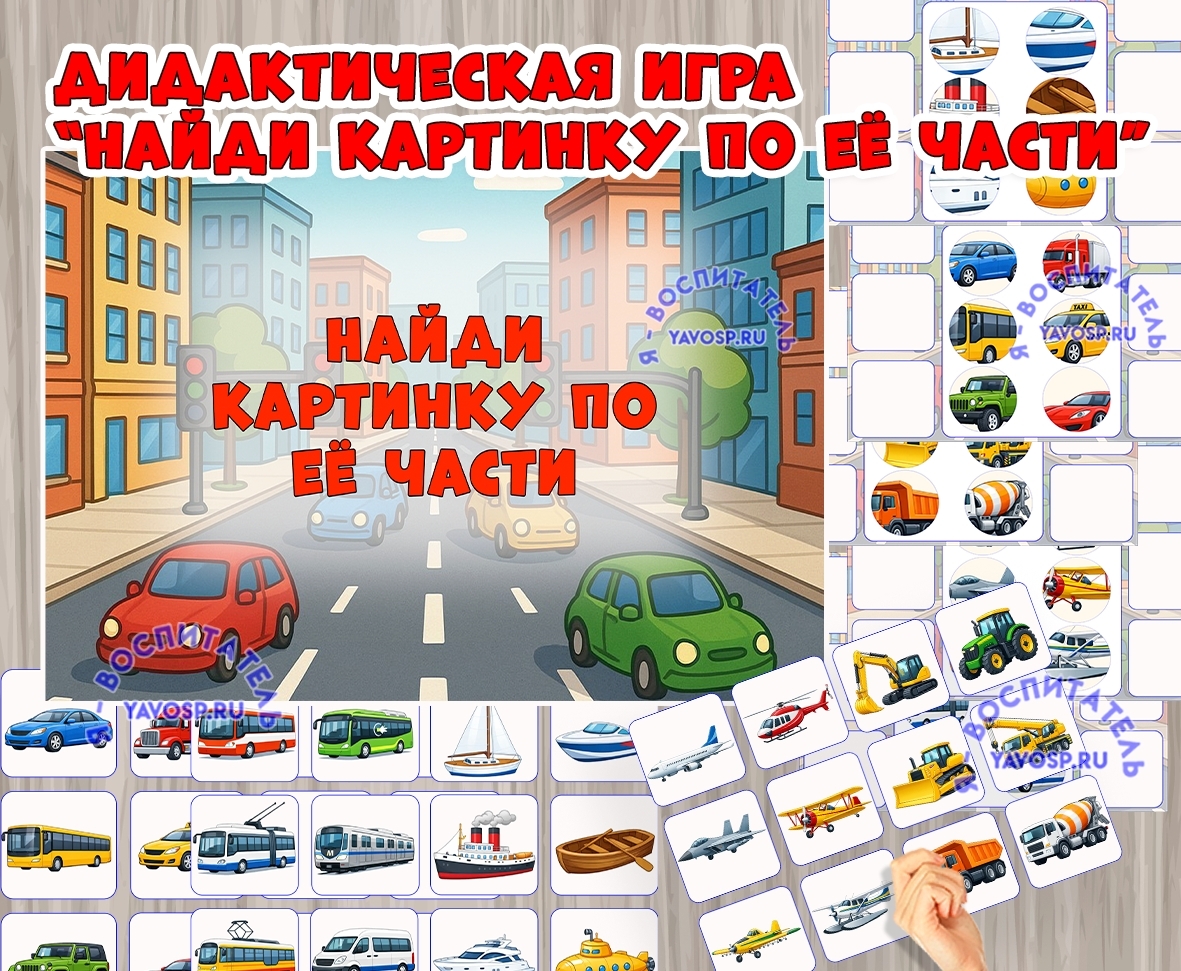 Игра направлена на развитие зрительного внимания, логического мышления и умения сравнивать рисунок. Ребёнку предлагается найти подходящую карточку к «фрагменту». Игра тренирует наблюдательность и усидчивость.
