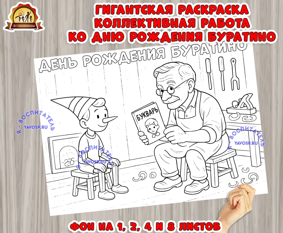 Коллективная работа - гигантская раскраска ко дню рождения Буратино.