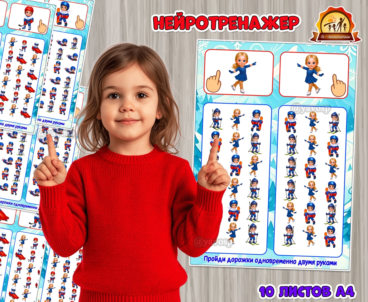 Игровая задача: провести одновременно левой и правой руками по нейродорожкам, соблюдая правила. Маршрут пальчиков должен соответствовать спортсмену, закрепленному в верхнем поле.