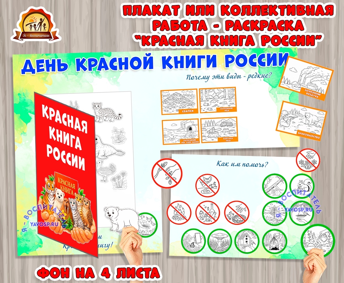 Плакат или коллективная работа - раскраска "День Красной книги России"