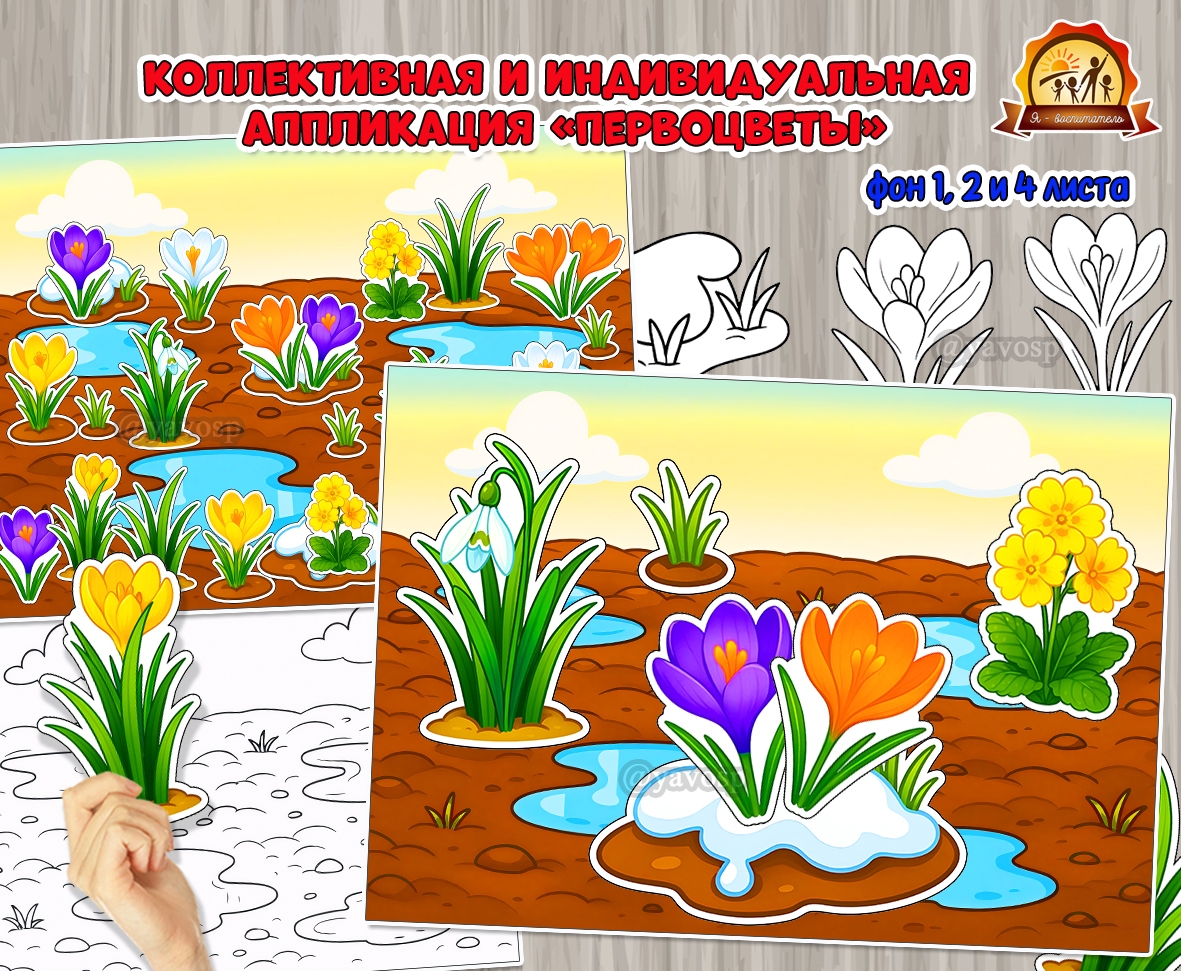 Коллективная и индивидуальная аппликация «Первоцветы»