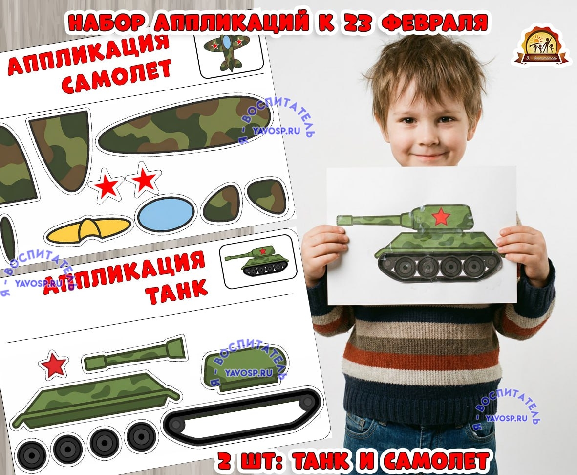 Набор аппликаций к 23 февраля "Танк" и "Самолет"
