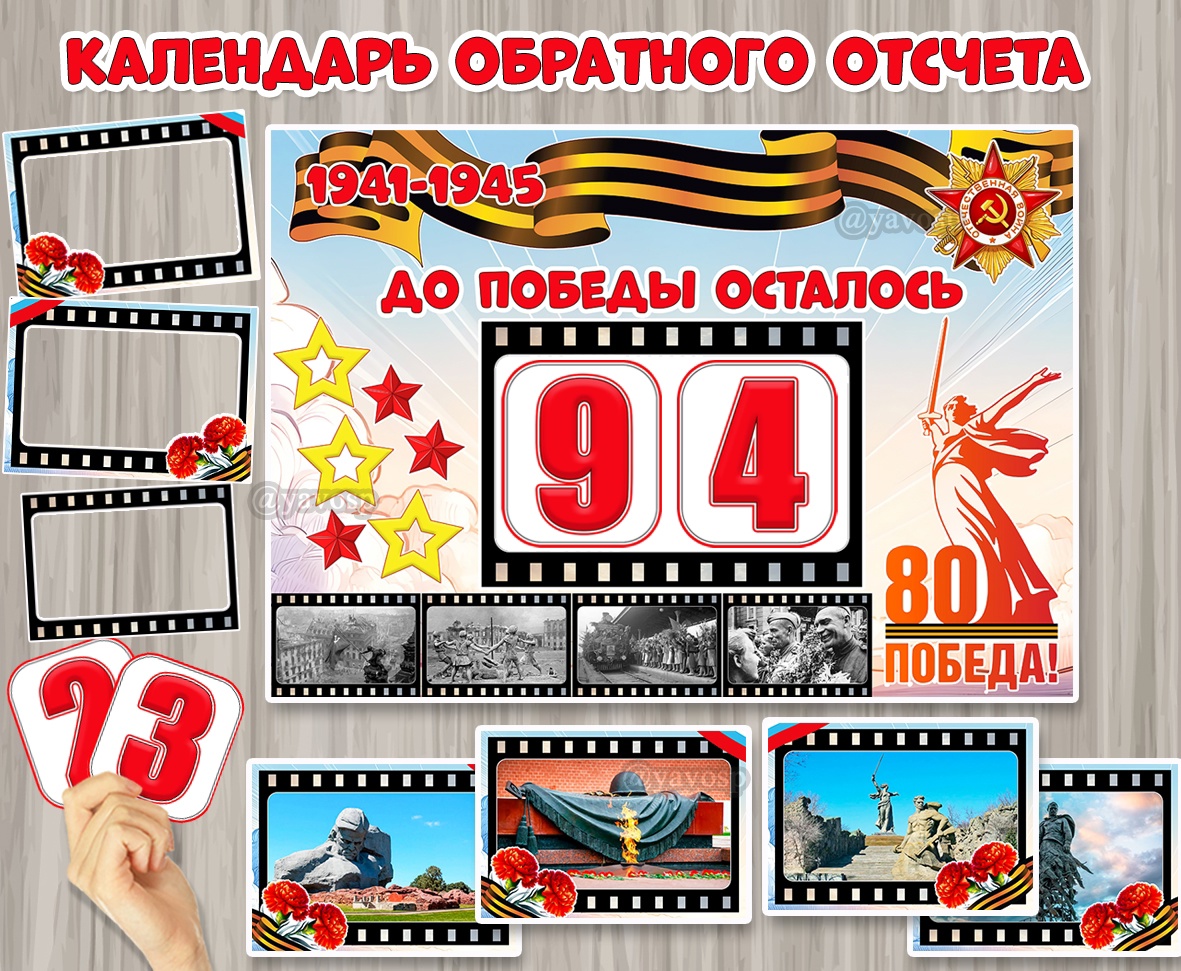 - Плакат-календарь отсчета дней до Победы на 1, 2 и 4 листа;