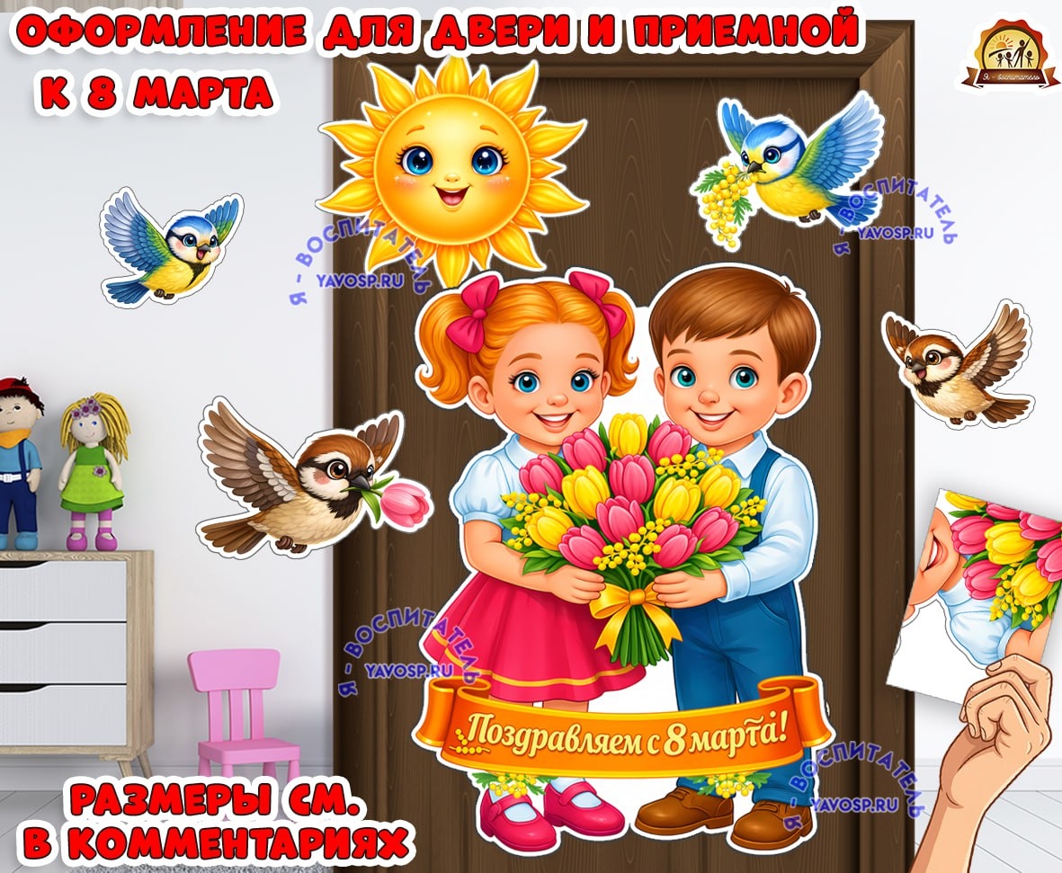 Оформление для дверей и приемной к 8 марта