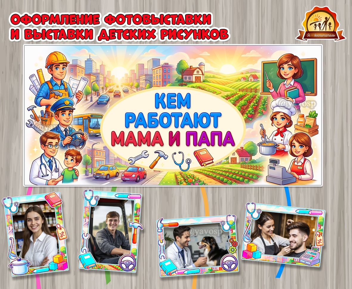Оформление фотовыставки или выставки детских рисунков «Кем работают мама и папа»