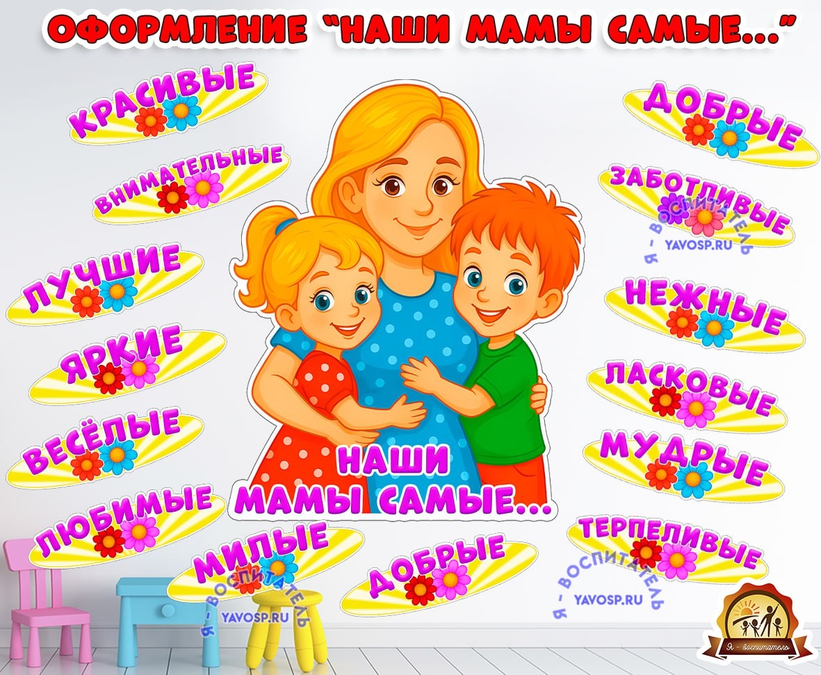 Плакат и облачка ко Дню матери "Наши мамы самые..."