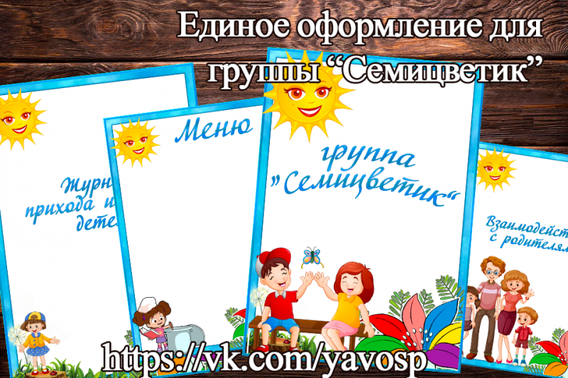 Маркировка для документации группы "Семицветик" (списки, меню, титульники и т.д.).