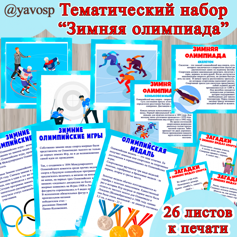 Тематический комплект "Зимняя олимпиада", "Зимние виды спорта" для самостоятельной печати