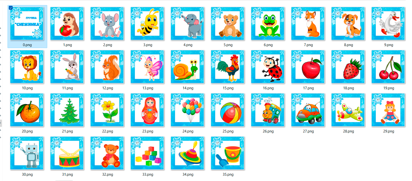 Маркировка для группы Снежинки, картинки для шкафчиков и мебели