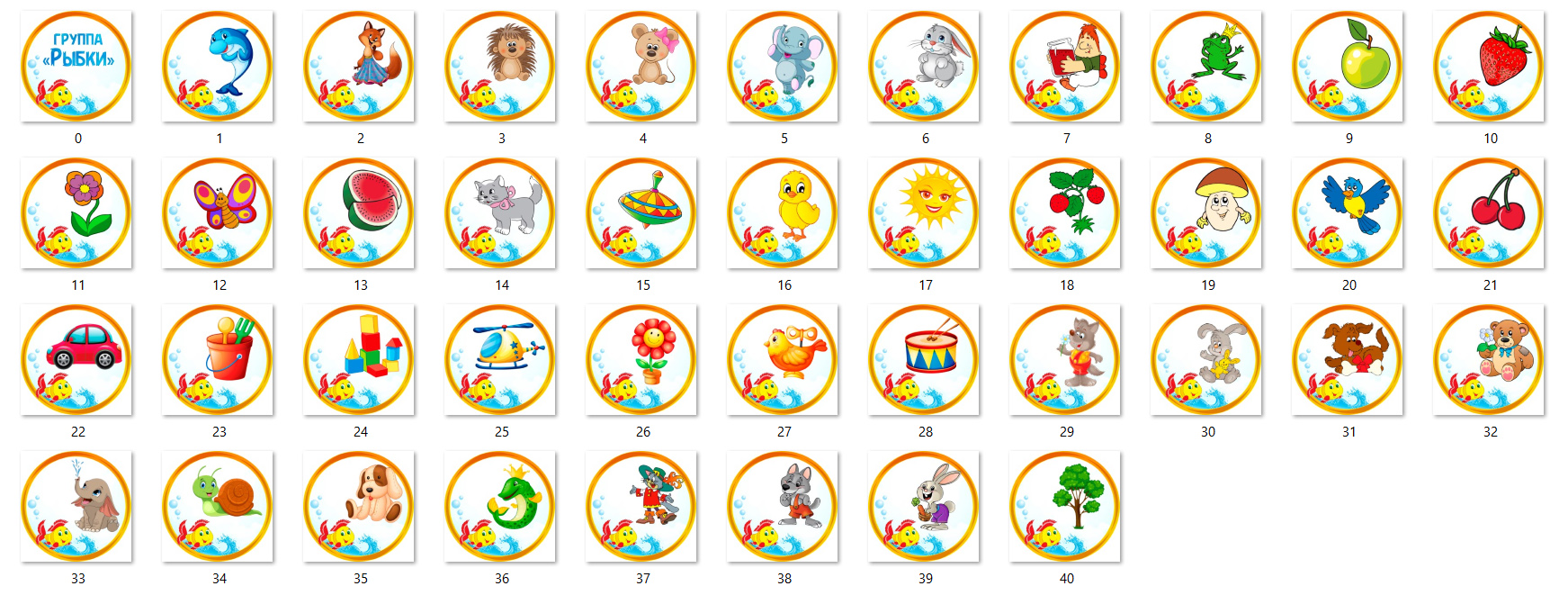 Маркировка для группы Рыбки, картинки для шкафчиков и мебели