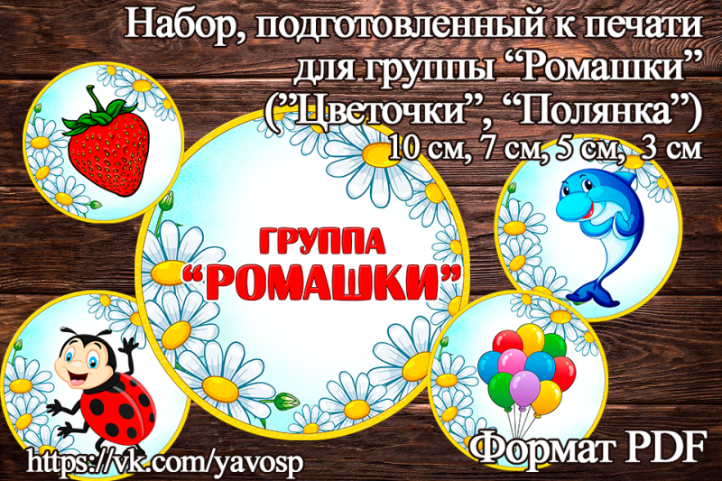 Маркировка для группы Ромашки, Цветочки, Полянка, картинки для шкафчиков и мебели - с картинками