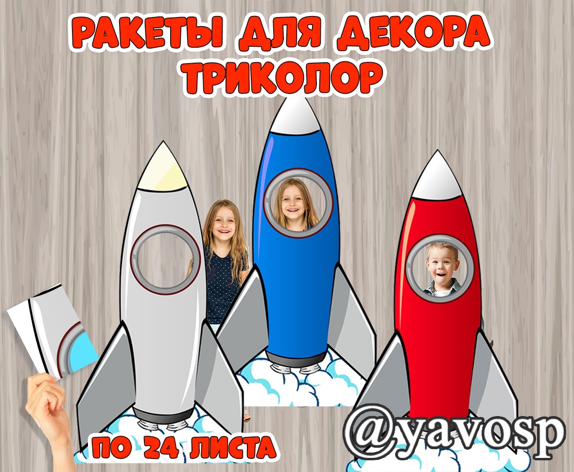 Ракеты в трех цветах (триколор российский), размеры ракет на 2, 6 и 24 листа. Все готово к печати (формат пдф)