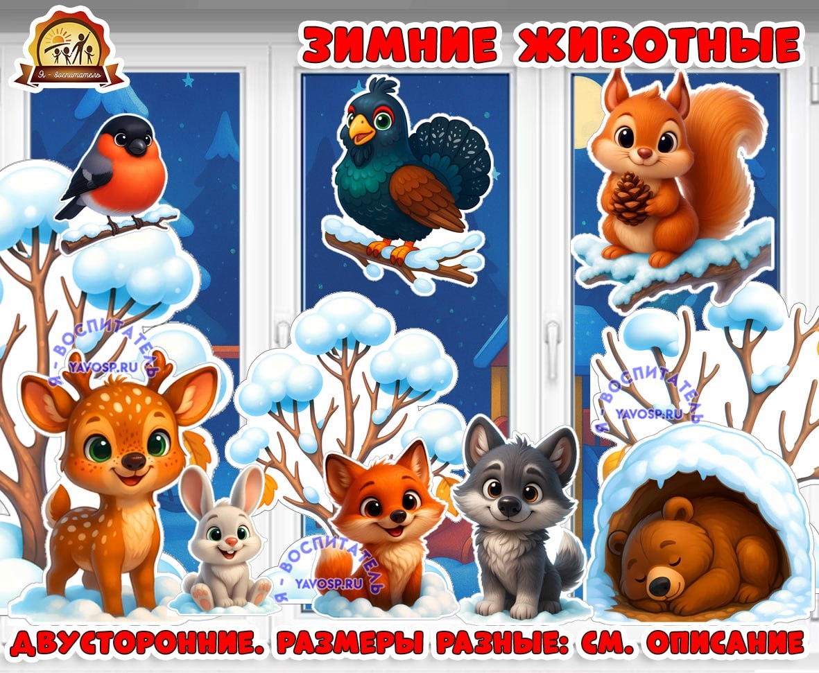 Двустороннее оформление "Животные зимой" (животные, оформление, домашние животные, животные севера, оформление группы)